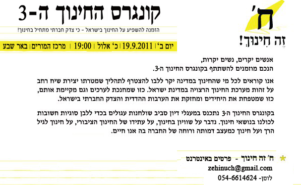 2. עדיין אפשר לחתום על העצומה נגד העסקת מורים מן החוץ במערכת החינוך וההשכלה הגבוהה: http://www.atzuma.co.il/publiceducation.